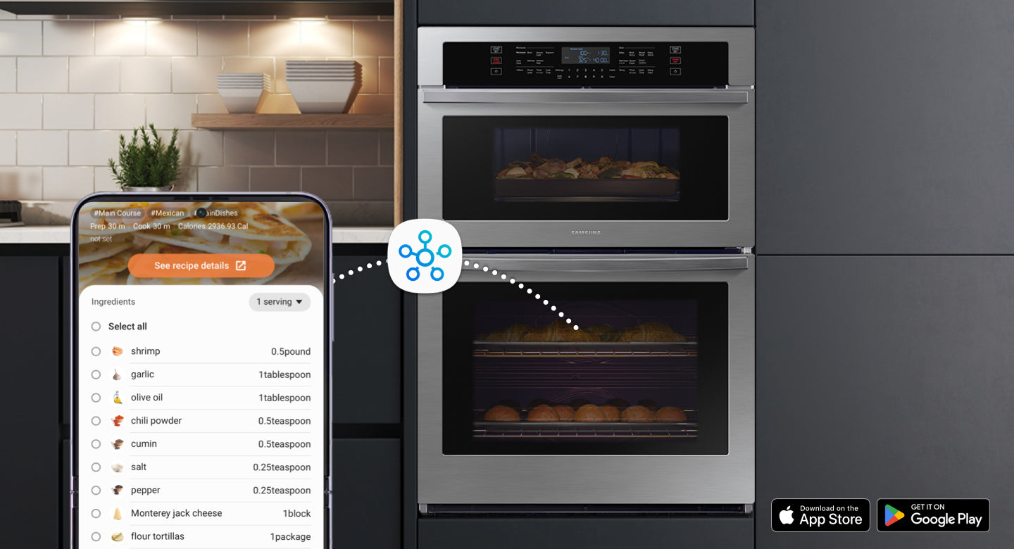 Digital-Analog Controls • 1.9/5.1 cu. ft. Capacity • Hybrid Clean and Self-Clean (Oven) • Gourmet Cook (Oven) • Dual Convection (Oven) • Wi-Fi Connectivity • Wi-Fi Enabled Temperature Probe (Oven) • LED Spotlights (Oven) • Easy View Window • 3 Heavy-Duty Racks including a Gliding Rack (Oven)