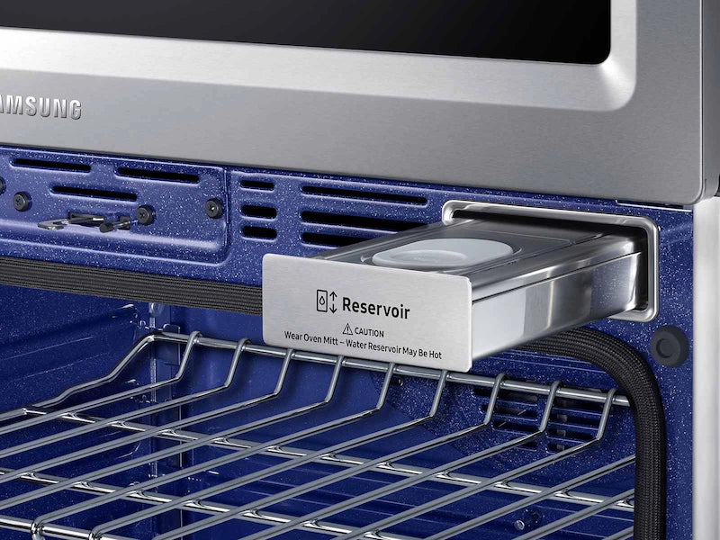• Ceramic Plate (Microwave) • Rapid Preheat (Oven) • Auto Latch Microwave Door • 6 Oven Modes including Steam Bake and Steam Roast • Blue LED Illuminated Knobs • Broil Element • Smart Control Key (Oven) • 6 Rack Positions (Oven) • Drop-Down Door Design • LCD Display