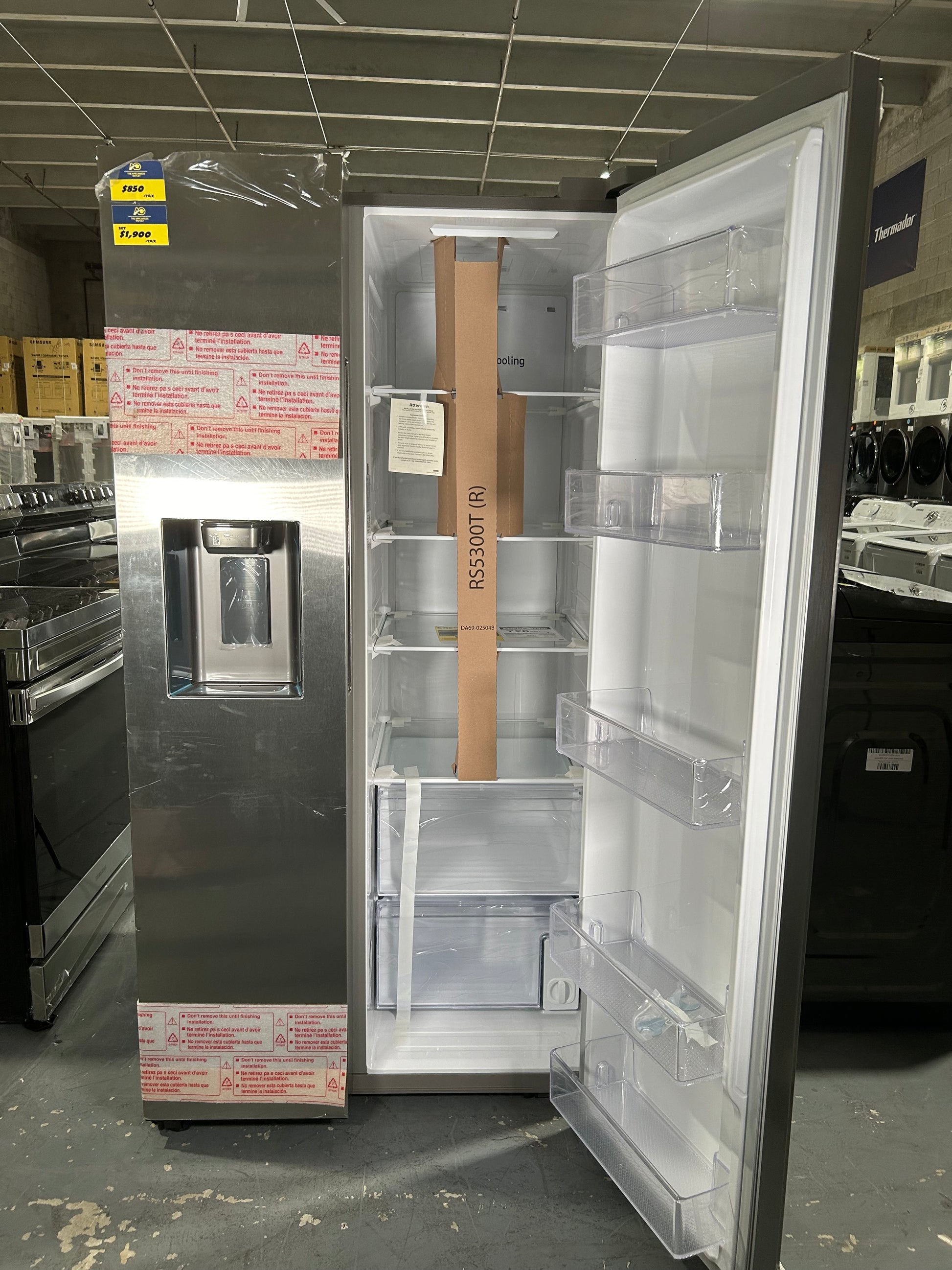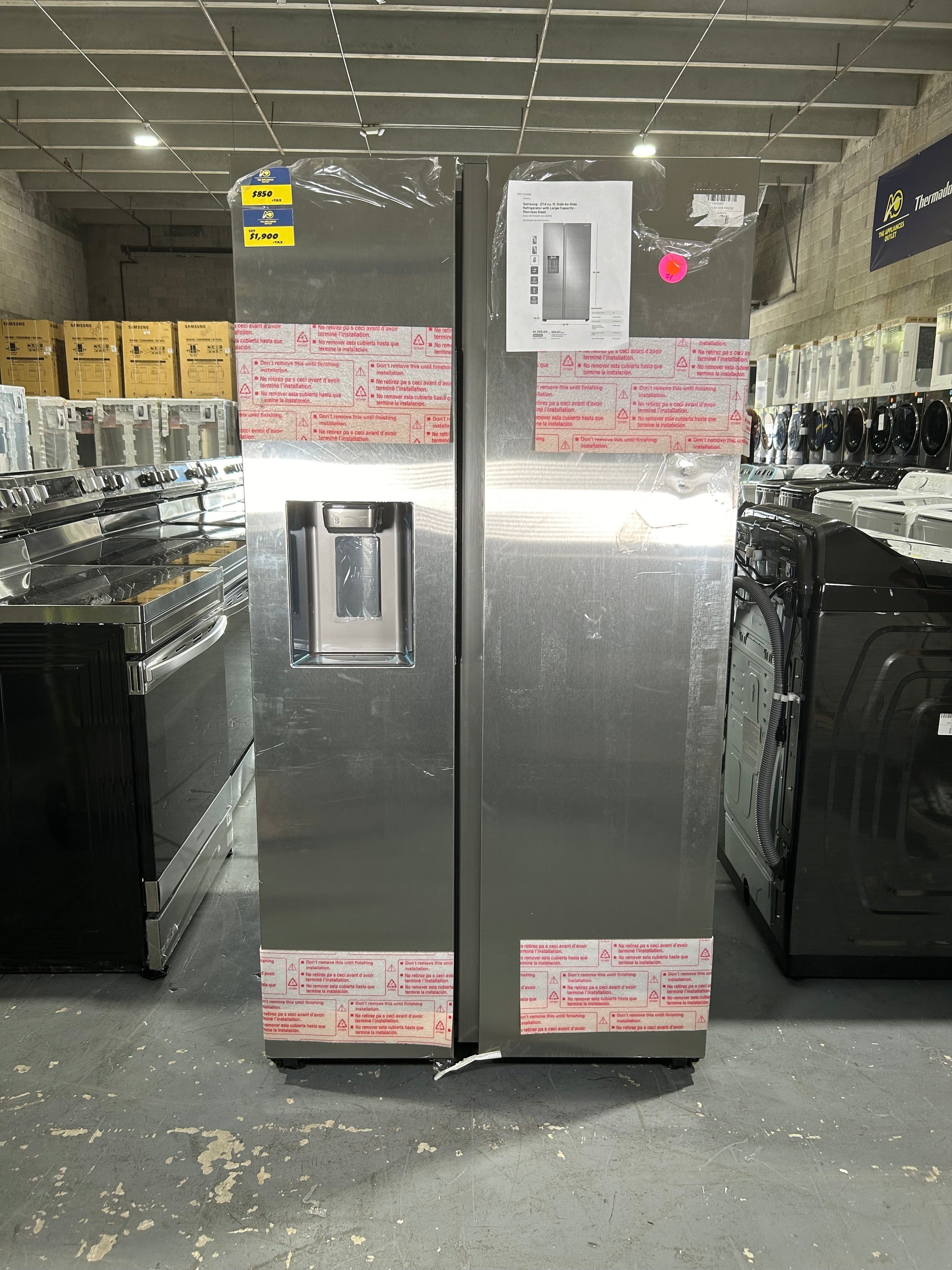 Samsung 27.4 cu. ft. large capacity Side-by-Side refrigerator that is beautifully designed with a minimal display dispenser, modern design that blends beautifully into your kitchen, and a finish that withstands everyday smudges.